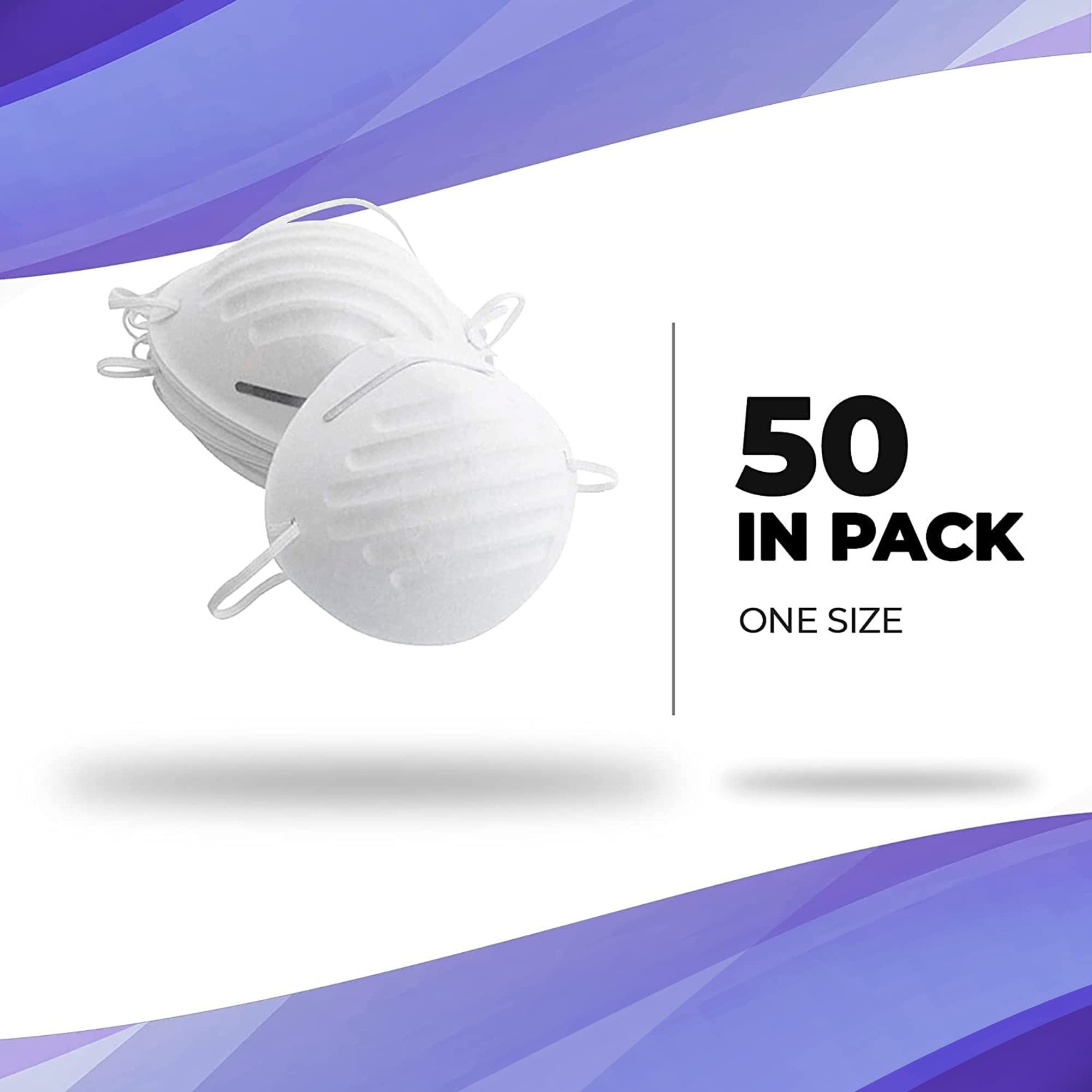 Dust and Particle Masks. Pack of 50 Disposable Respirator with Elastic Strap Dust and Filter Safety Masks for Non-Toxic Dust, Pollen, Danger, sawdust
