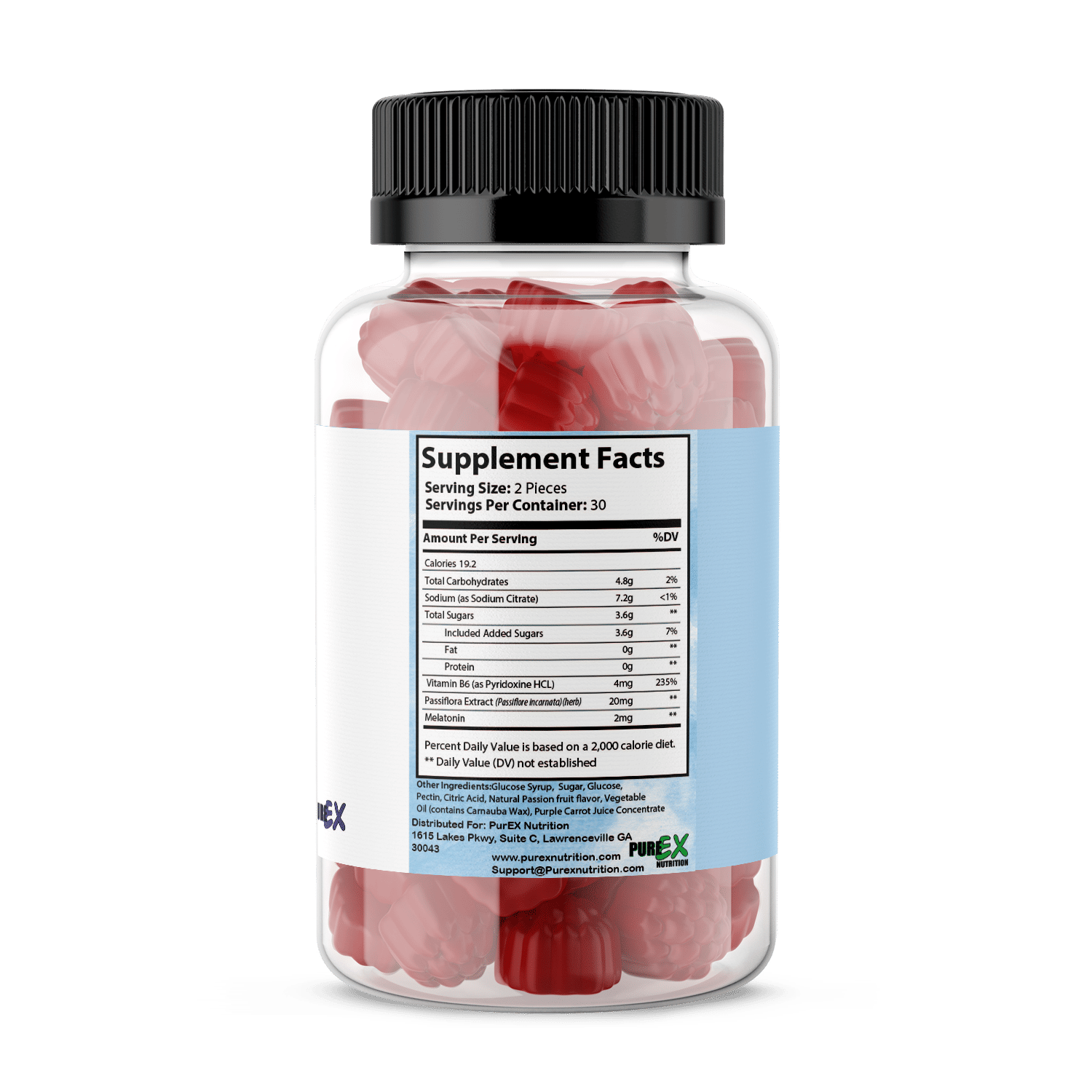 Pure Sleep gummies helps you get to sleep and get quality sleep so you can recharge and recover properly. We put the standard melatonin. We also added vitamin B6 to help produce more melatonin naturally. Melatonin tells the body that it is night time and prepares it for sleep. This is helpful when you have long or busy days and need the signals earlier than you plan on sleeping for better recovery. Our sleep formula also includes passion flower to help relax the body and mind to bring it closer to sedentary.
