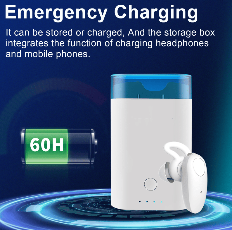 Product Features: High-power desktop charger with self-lit lamp and power bank functions. Noise reduction system amplifies sound suitable for single or dual earlobe use. Earbud-style assistive listening promotes eardrum circulation acoustic frequency therapy makes listening more comfortable soft and breathable material conforms to the natural physiological curve of the human ear.
